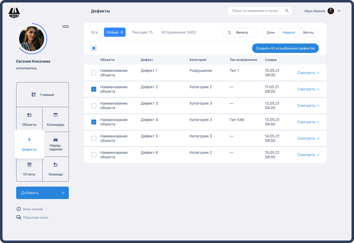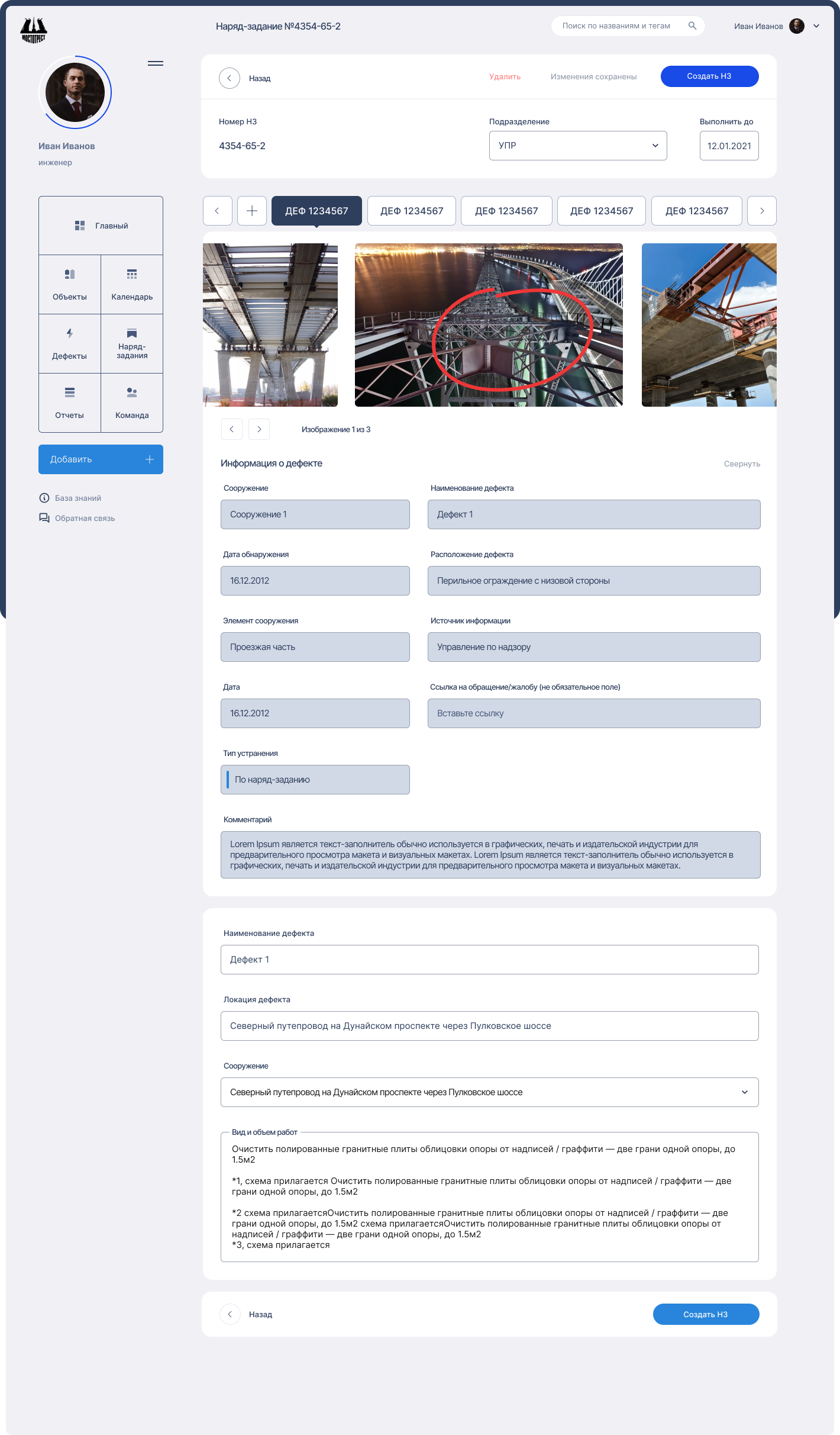 Пользователь выбирает один или несколько дефектов по ключевому слову или номеру из базы и формирует наряд-задание. При этом детализация каждого дефекта у него перед глазами и в случае ошибочно добавленного дефекта, его легко будет выявить и удалить.