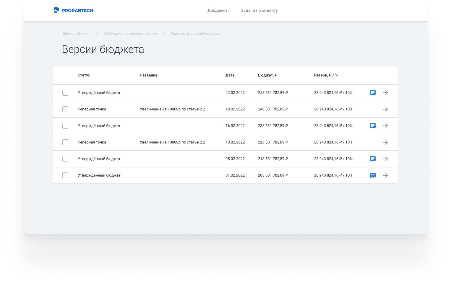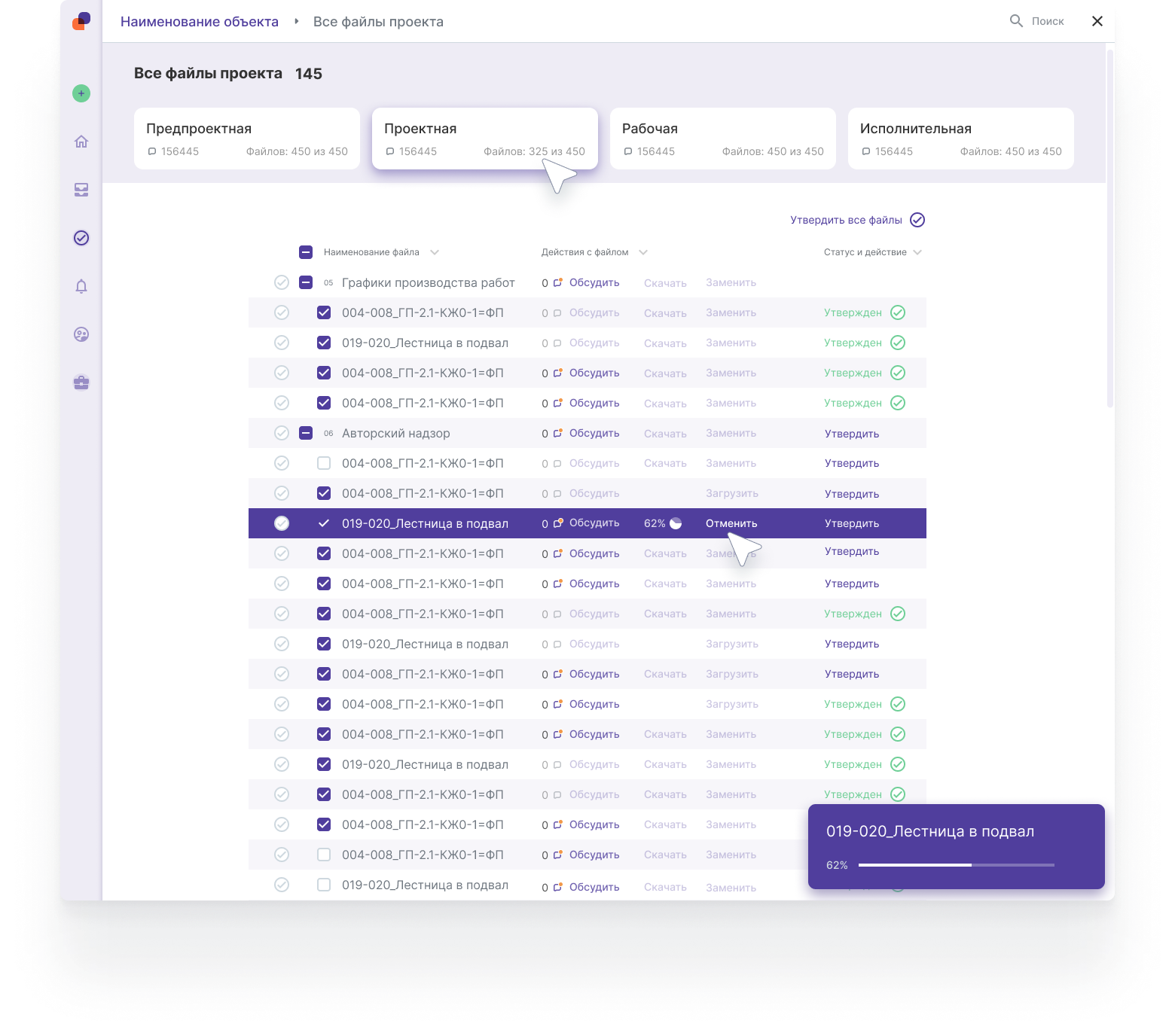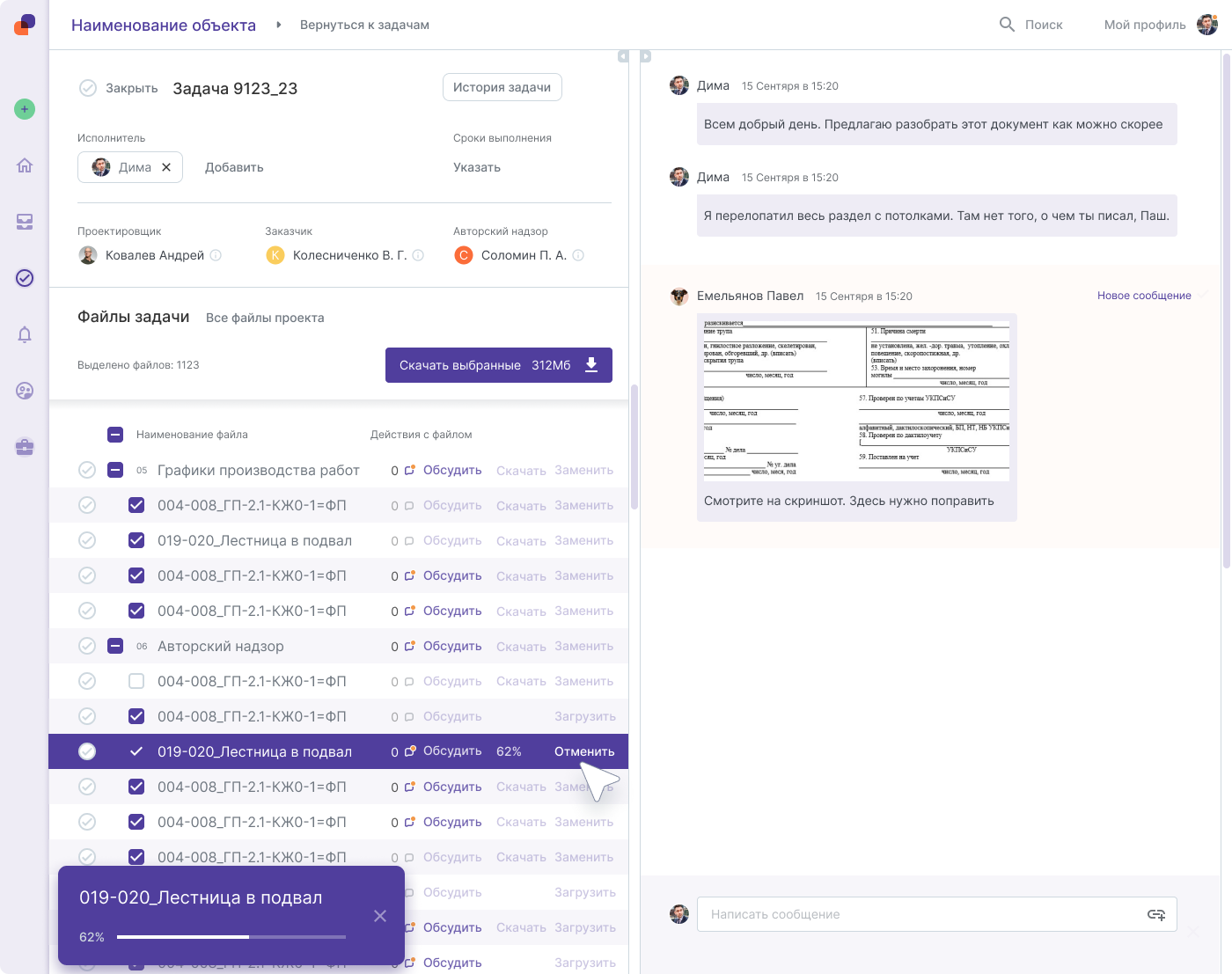 По каждому объекту формируются отчеты по процессу сдачи