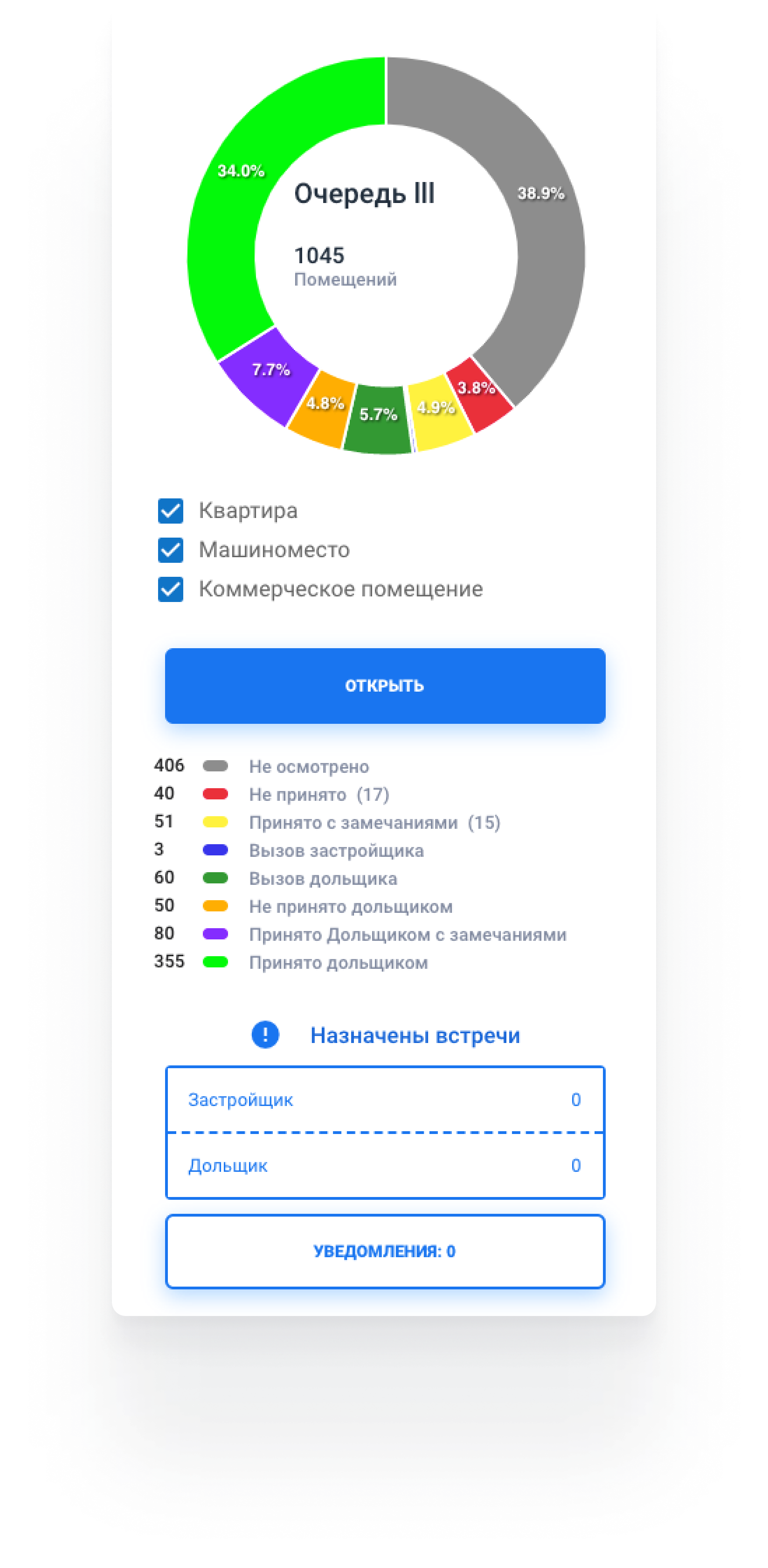 Каждое помещение осматривается комиссией и по результатам осмотра либо ставятся задачи на исправление, либо приглашают на осмотр дольщика