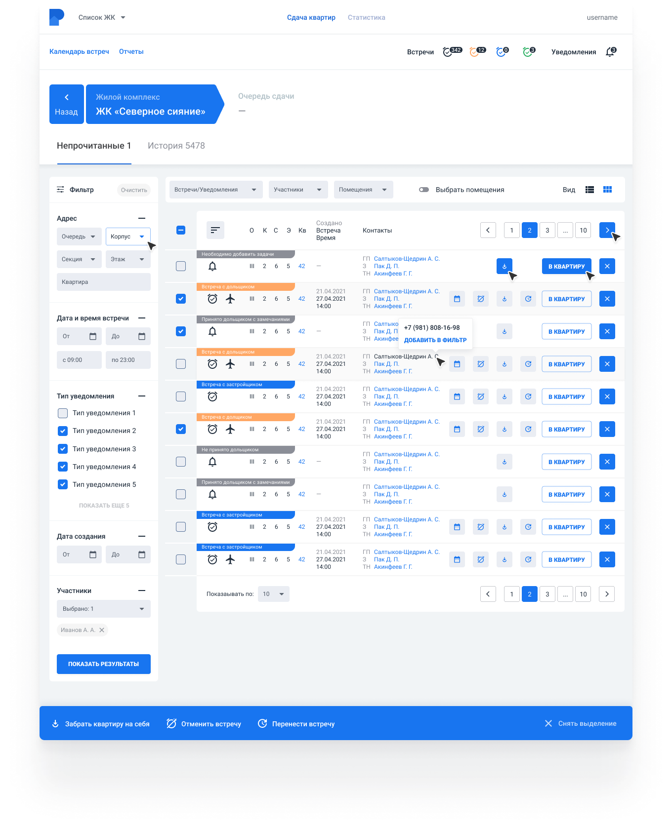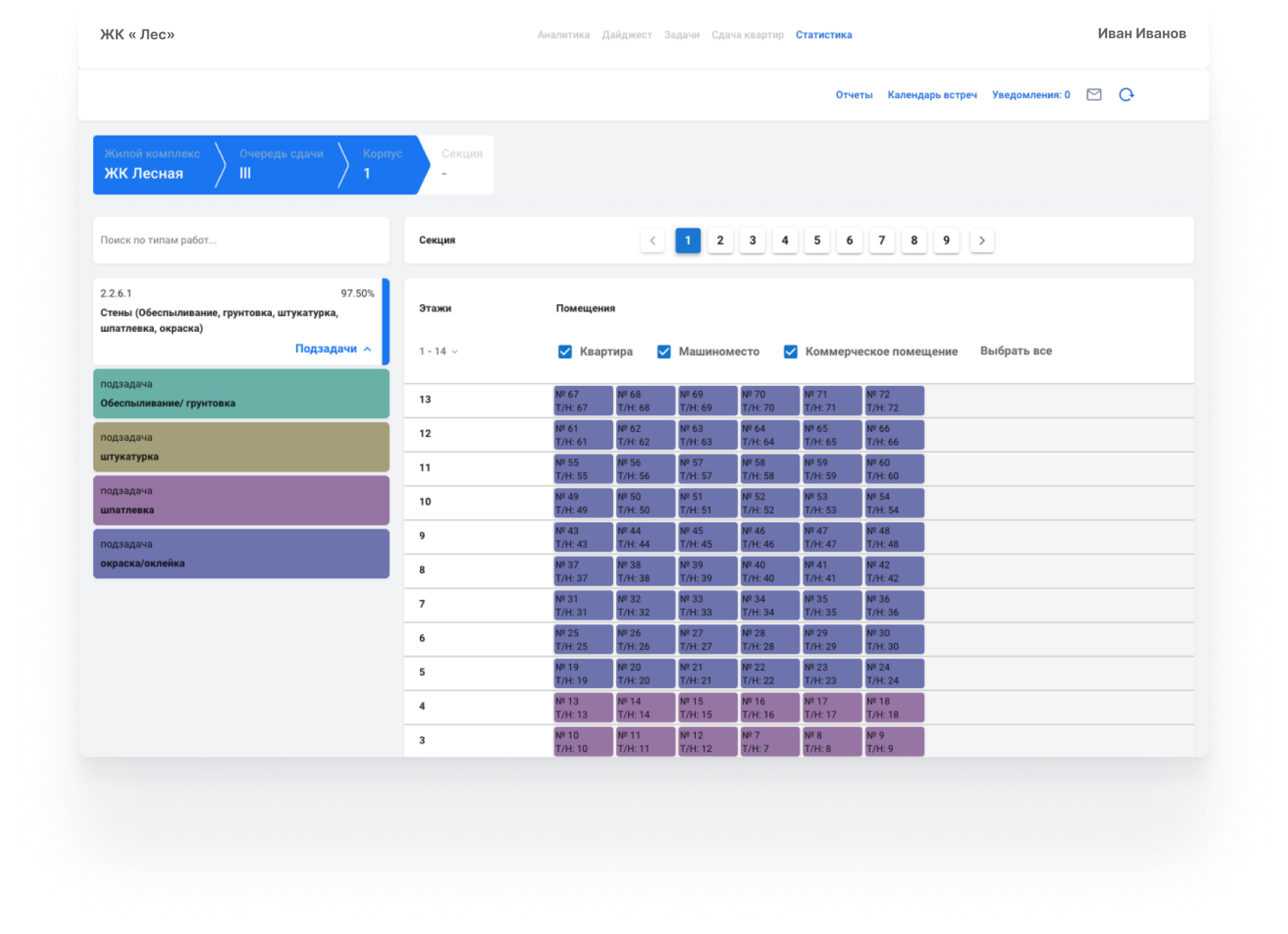 Система позволяет автоматизировать сдачу квартир. Аналитика по сдаче объекта