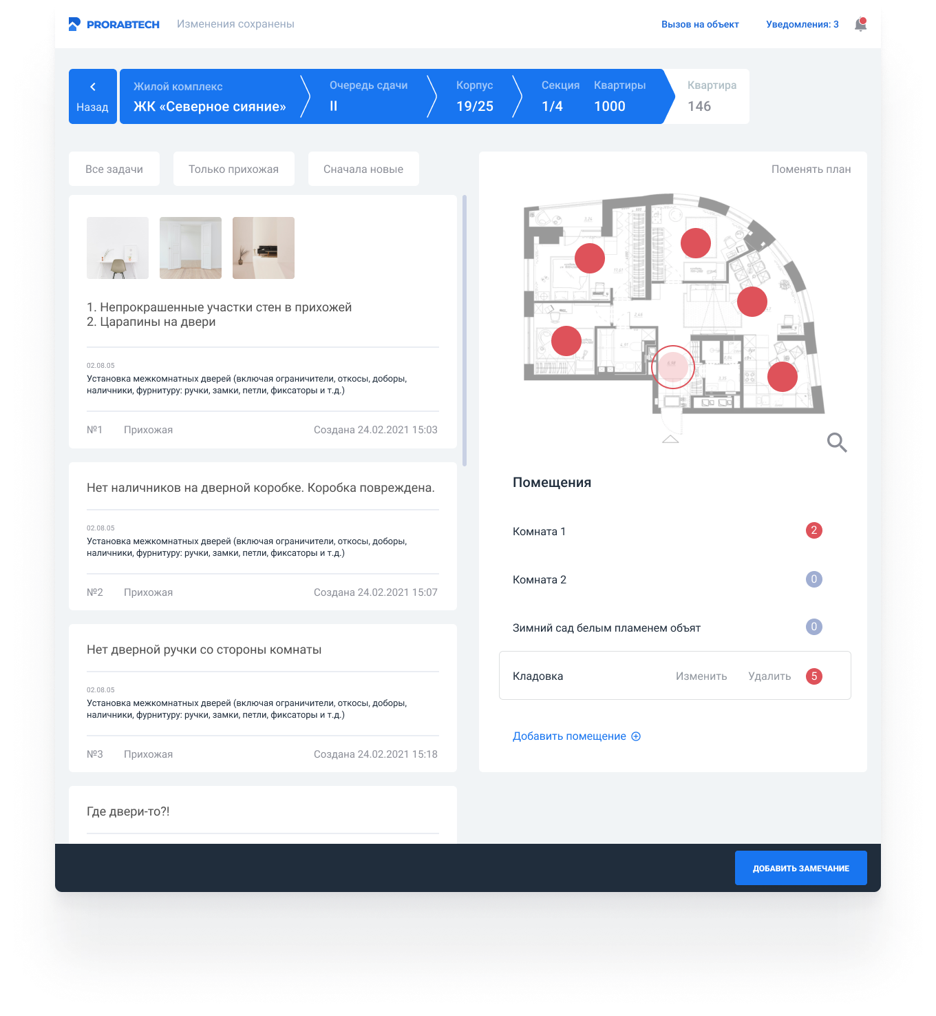 В системе генподрядчик получает информацию о новых поступивших задачах по исправлению работ
